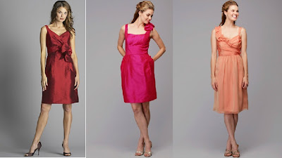 Inspired by Valentine's Day... I bring you bridesmaids dresses in various shades of reds and pinks. I love these dresses because they are cocktail-inspired, your girls will be able to wear them again and again!